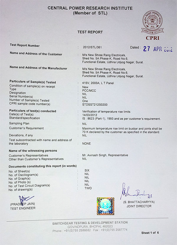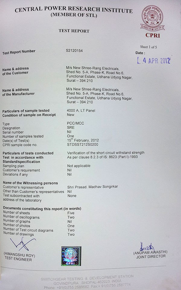 | Switch Gear Testing Center; C.P.R.I. BHOPAL (Central Power Research Institute) |